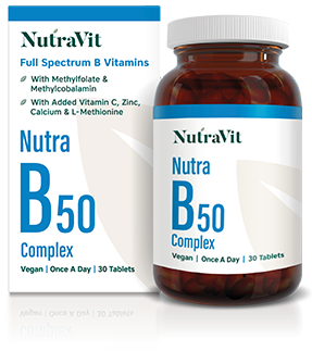 Nutra B50 Complex 30 Tablets придонесуваат за нормално функционирање на нервниот систем, метаболизмот на хомоцистеин, психолошката функција, формирањето на црвени крвни зрнца, имунолошкиот систем и намалување на заморот и исцрпеноста. Дизајнирани за возрасни, да помогнат во одржувањето на косата, кожата и очите. Тие исто така обезбедуваат и енергетска поддршка.